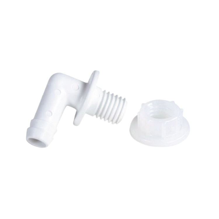 Εξάρτημα υπερχείλισης 1/2" για συστήματα άλμης. Εξασφαλίζει ασφαλή αποστράγγιση νερού και ταιριάζει σε ντουλάπια και δοχεία αποσκληρυντών.